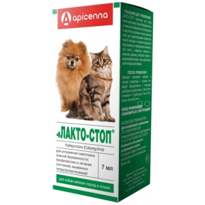 Лакто-Стоп подавляет лактацию, предотвращает увеличение молочных желез и профилактирует раз- витие лактационного мастита. Снижение уровня пролактина способствует быстрому исчезновению при- знаков ложной беременности у животного.